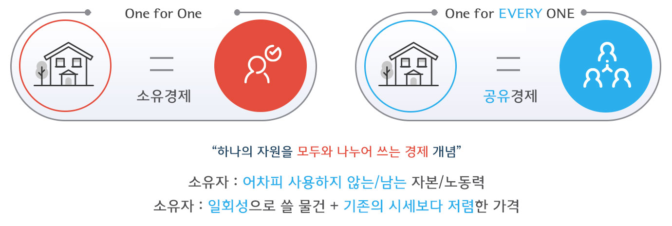 공유경제(Sharing Economy)는 한번 생산된 재화를 여러사람이 서로 빌려주고 나누어 쓰는 경제 활동 방식을 의미한다. 정보통신의 발달로 실시간으로 광범위한 수요자와 공급자를 연결해 주는 역할을 하고 있다.