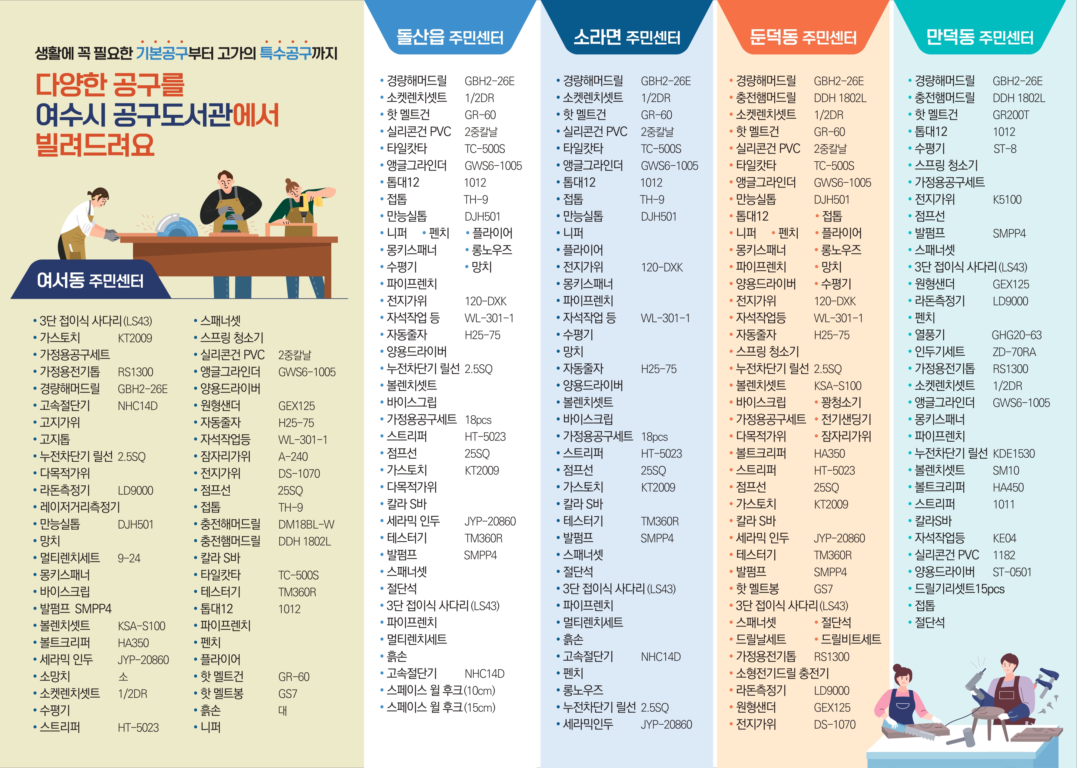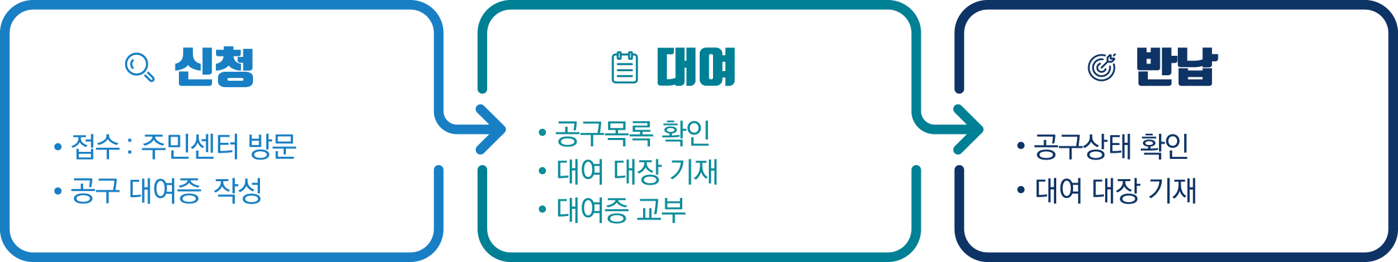 | 이용방법 | 신분증 지참하여 방문 신청(공구 대여증 작성) |